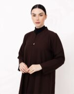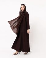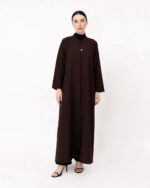 Refined and timeless, this abaya showcases a structured silhouette with a subtle modern edge. The front clasp detail adds a hint of sophistication, while the back seam design enhances its tailored flow. With its clean lines and effortless drape, it’s a perfect balance of elegance and simplicity, ideal for both formal and everyday occasions.